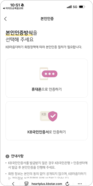 휴대폰 또는 KB국민인증서로