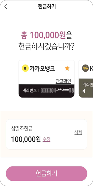 헌금하기 버튼을 누릅니다.