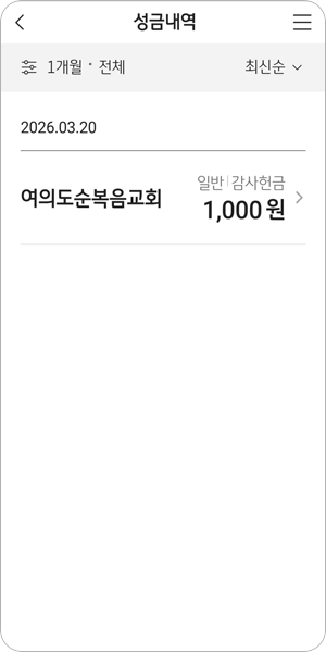 헌금한 내역을 실시간으로 확인
